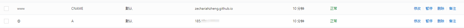 3、在域名提供商的网站配置DNS即可,以Godaddy为例配置两条记录如下: